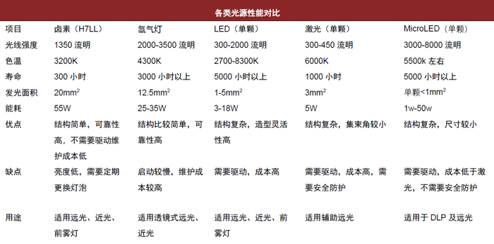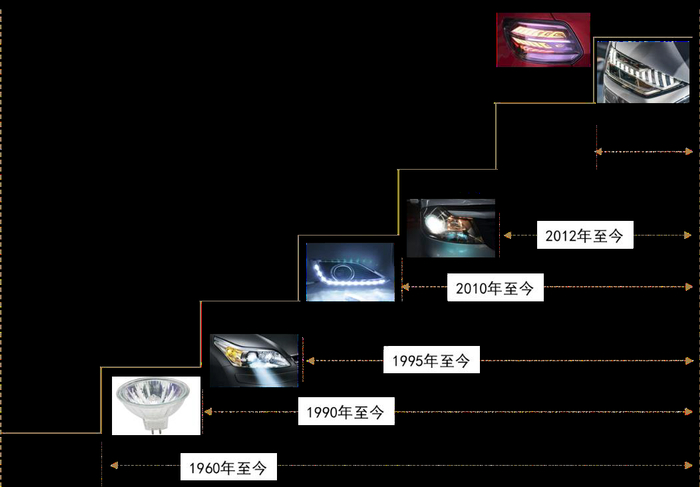 车灯行业的发展主要受光源技术革新推动,受汽车电子能力进步开花结果,近年来随着固体照明技术的不断突破,迅速从卤素灯、氙气灯走向LED、激光以及MicroLED。新光源技术的出现引领车灯产品不断走向升级。在这一过程中,车灯产品功能不断丰富,使用场景不断增加,带动单车价值量不断提升。从高压气体放电技术(氙气灯)引入行业开始,诸如镇流器、电磁阀等越来越多的电子控制部件出现在了车灯领域,大大提升了行业活跃度与壁垒。