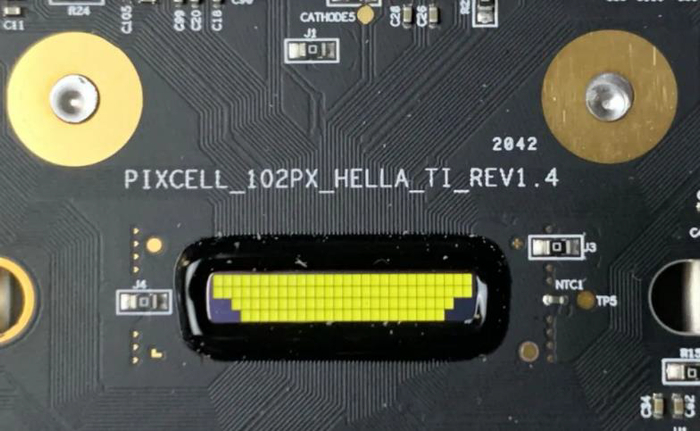 特斯拉Model3/Y ADB大灯解析:2021款特斯拉Model3和Model Y高配均使用了ADB技术,共配备102个像素Pixel,受益于WLP技术光源间隙很小,对于道路光区分别控制有比较大的优势。由于像素级LED芯片的增多,光源模块电子结构复杂度较高,对于电路设计、元器件排布以及电磁干扰等设计及加工要求有较大提升。目前该产品主要由外资厂商供应。