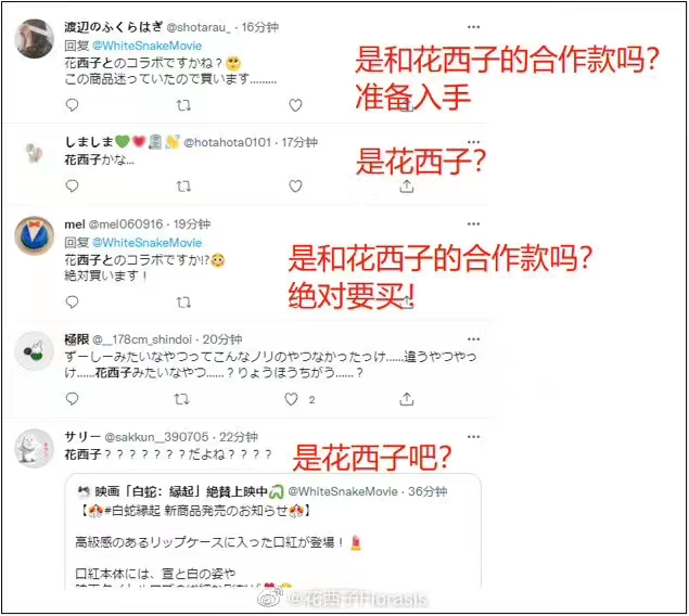 新京报讯(记者 于梦儿)11月18日,国货美妆品牌花西子在官方微博发布一则声明,指出追光动画旗下知名动画电影《白蛇:缘起》及其在日本授权的IP开发公司TeamJoy涉嫌抄袭花西子旗下产品“同心锁口红”。很多日本网友误以为,TeamJoy发布的周边产品是由《白蛇:缘起》IP方与花西子合作生产的联名款“同心锁口红”。据介绍,“同心锁口红”为花西子在2020年8月推出,系其原创设计并已申请外观专利。