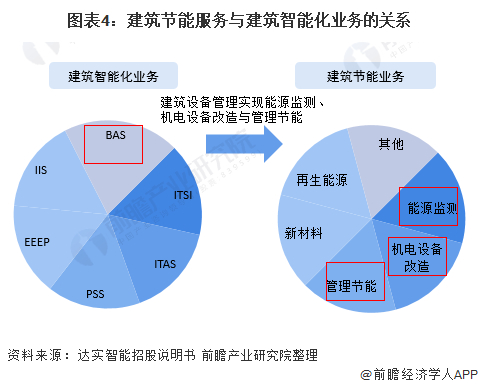建筑智能化系统(BAS)是连接“建筑节能服务”与“建筑智能化业务”的纽带。通过设计、建立建筑智能化系统的BAS,并开展基于智能化技术的建筑机电设备节能改造、机电设备优化运行和能源监测等,是开展建筑节能服务的主要方式。