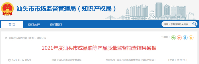 广东省汕头市市场监管局:6款柴油和2款车用尿素不合格
