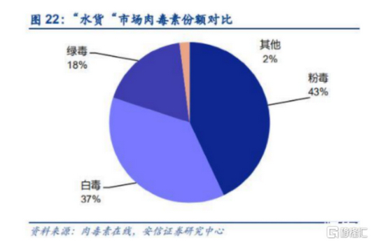 数据显示,2019年粉毒(Meditoxin)、白毒(Letybo)、绿毒(Botulinumtoxin)的“水货”市场占有率分别达到43%、37%和18%。