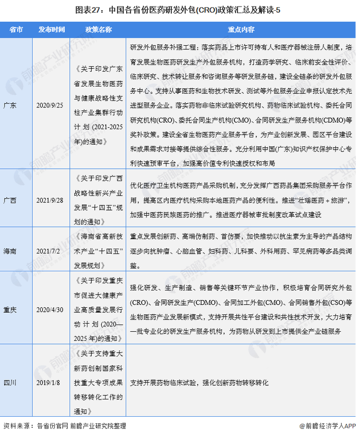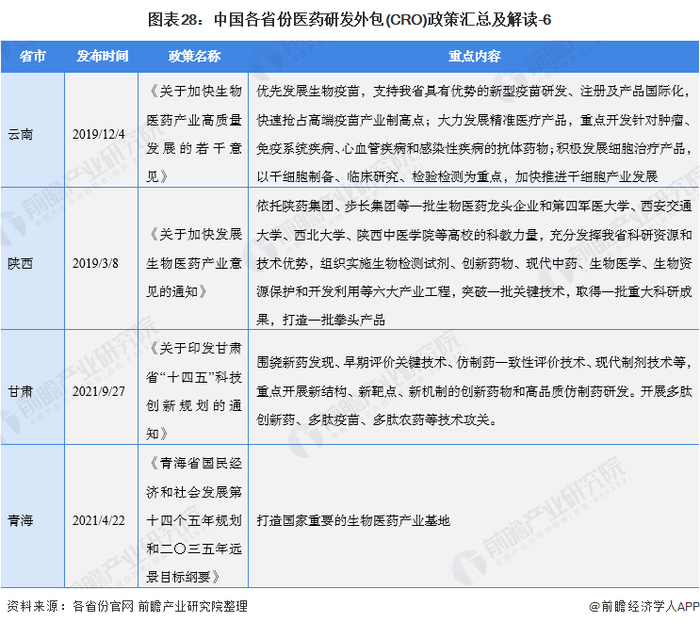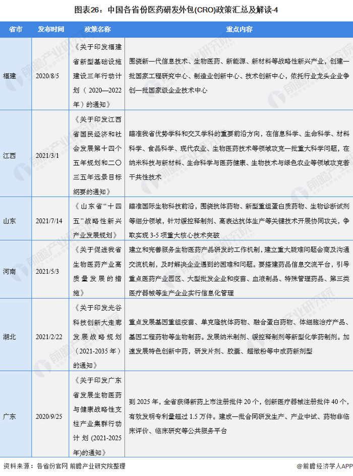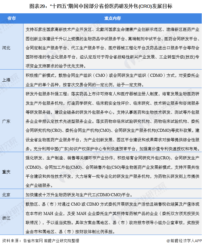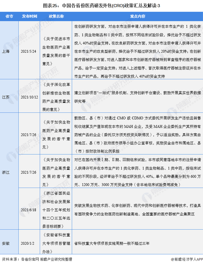近年来,我国各省份积极出台各项政策,鼓励医药研发外包(CRO)行业发展。