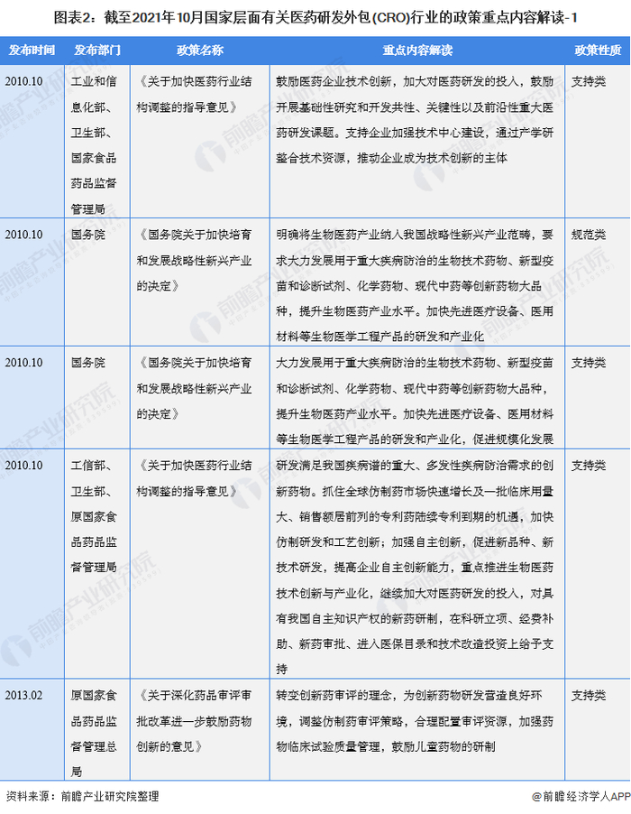 重磅!2021年中国及31省市医药研发外包(CRO)行业政策汇总及解读(全)医药创新政策频出利好CRO行业