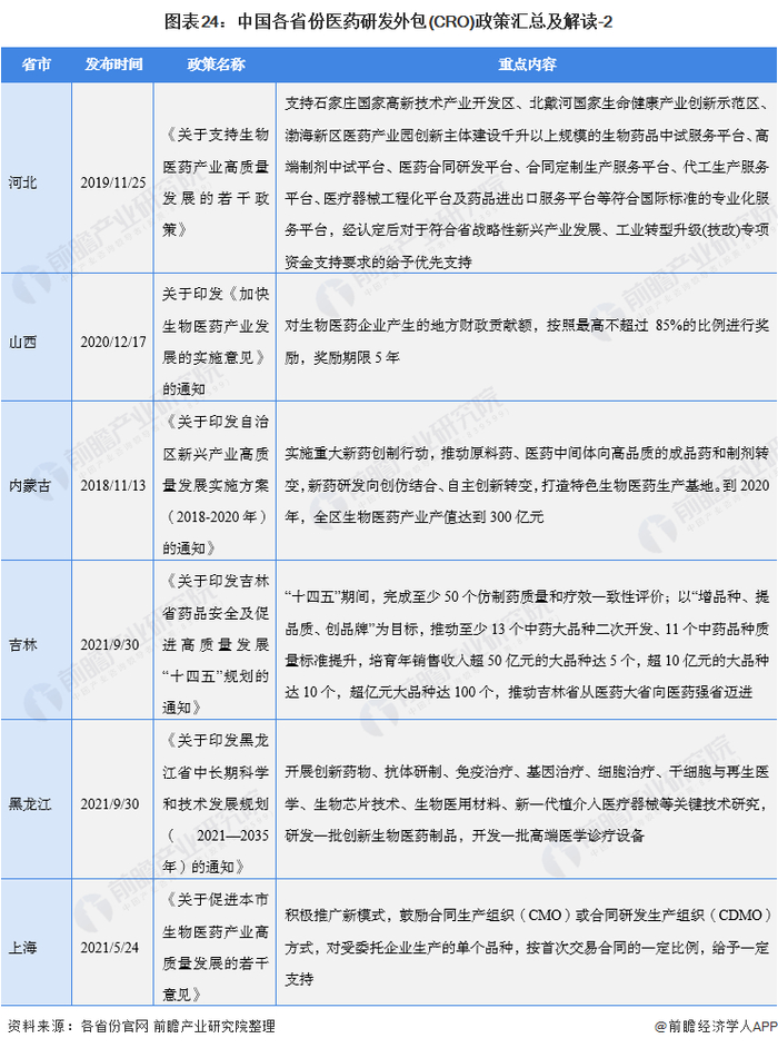 原标题:重磅!2021年中国及31省市医药研发外包(CRO)行业政策汇总及解读(全)医药创新政策频出利好CRO行业 来源:前瞻产业研究院