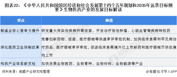 在2021年3月23日,中共中央发布了《中华人民共和国国民经济和社会发展第十四个五年规划和2035年远景目标纲要》指出加快发展生物医药、生物育种、生物材料、生物能源等产业;具体来看,重点研发重大传染性疾病所需疫苗,开发治疗恶性肿瘤、心脑血管等疾病特效药。