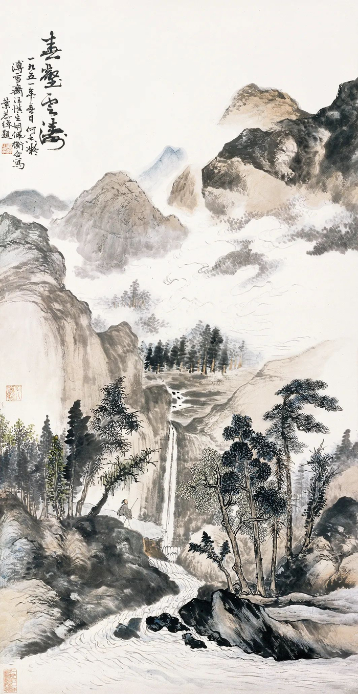 《春壑云涛》 何香凝 溥雪斋 汪慎生 胡佩衡 叶恭绰 1951年 纸本设色 何香凝美术馆藏