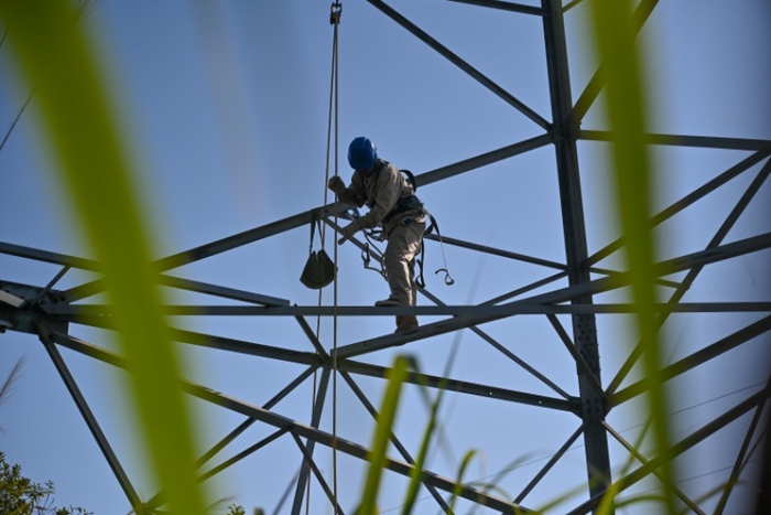 要在60米的高空给“带电”的高压电塔上装灯,操作技术难度指数可以说是五颗星。