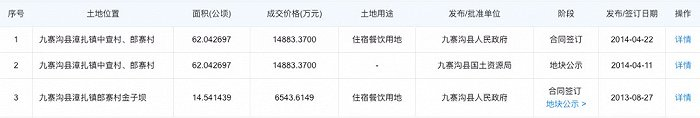 根据企查查信息,2013年8月27日和2014年4月22日,九寨鲁能旅投公司以约21427万元的总成交价,拿下了九寨沟县漳扎镇签订2宗住宿餐饮用地,从土地区位和面积来看,该项目即为九寨·鲁能胜地。