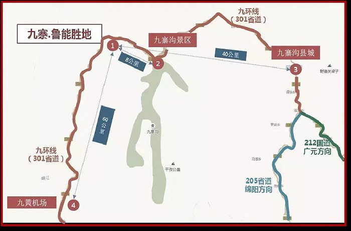 资料显示,九寨鲁能胜地位于四川省九寨沟县漳扎镇中查沟,海拔2400米至4000米,为长约10公里、宽约3公里的沟谷地形。该项目区位优势明显,毗邻世界自然文化遗产——九寨沟国家级自然保护区,距九寨沟景区8km,距九黄机场60km,距九寨沟县城40km。