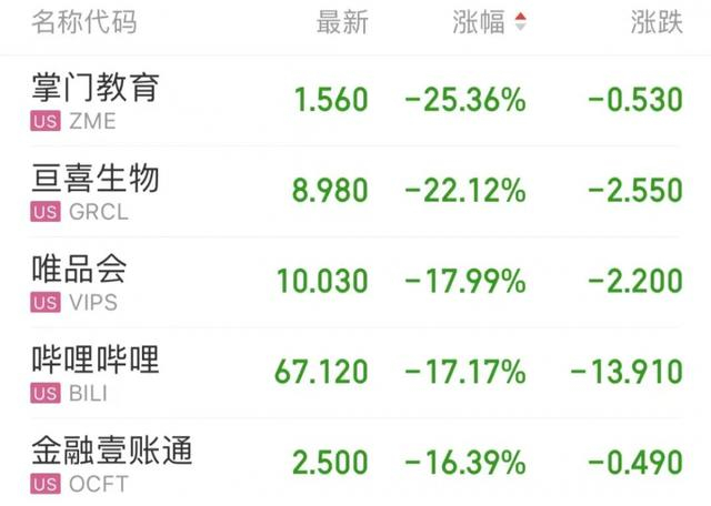 热门中概股多数下跌
