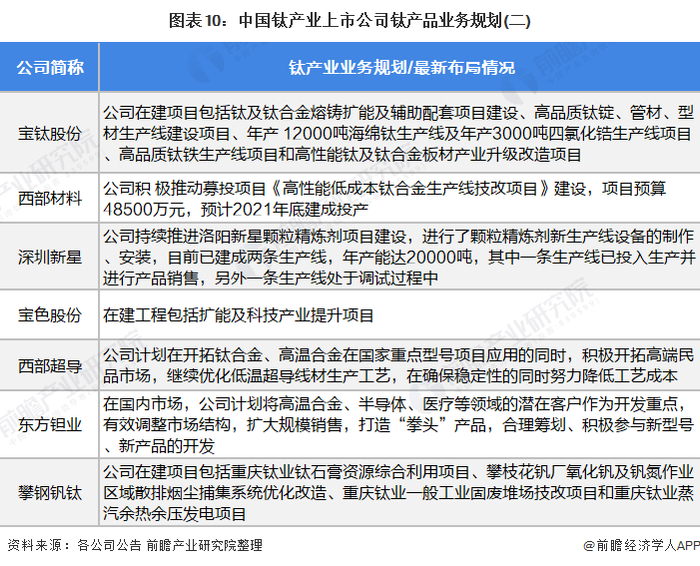 钛产业代表性企业最新业务布局