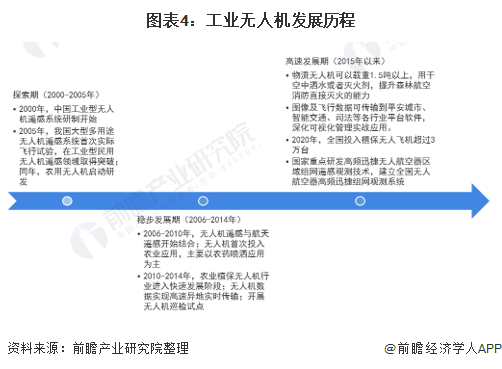 截止目前,我国工业无人机行业的发展大致可分为三个阶段,目前正处在高速发展阶段。