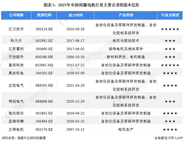 本文核心数据:伺服电机行业市场份额、伺服电机产业上市公司基本信息表、伺服电机企业业务布局及竞争力评价、伺服电机行业竞争状态