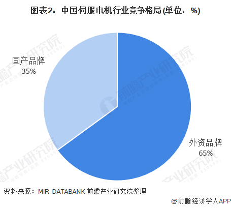 由于我国发展起步较晚,在伺服电机领域内,我国一直处于追赶的位置。从目前国内竞争格局来看,我国伺服电机行业65%左右的份额都是由外资品牌所占据。