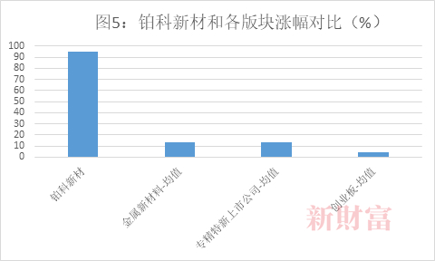 二级市场上,从2021年初至9月底,铂科新材股价涨幅约有95%;300余家专精特新上市公司股价平均涨幅为12.87%,中值为-2.8%;创业板公司涨幅均值为4.68%,中值为-5.75%。金属新材料行业公司股价平均涨幅为13.3%,中值为13.8%,铂科新材在细分行业中涨幅夺得第一,并大大领先专精特新上市公司、创业板整体表现(图5)。