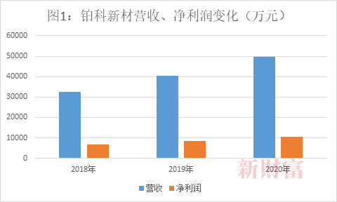 2018至2020年,铂科新材营收从32417万元增至49683万元,净利润从6899万元跃升至10653万元(图1)。因为疫情,2020年制造业受到重大挑战,铂科新材营收却逆势增长23%,净利润增长26%,展现出较强的韧性。