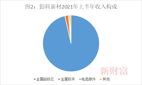 2021年上半年,铂科新材在新能源汽车领域实现销售收入2200万元,同比增长100%,收入占比提高到7%。其车载产品进一步取得比亚迪、华为、威迈斯、麦格米特等整车及组件厂商的认可。