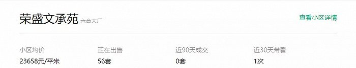至于二手房方面,周边有紫艺华府、荣盛文承苑,根据链家网数据显示,目前紫艺华府挂牌均价约20448元/㎡,荣盛文承苑挂牌均价约23658元/㎡。