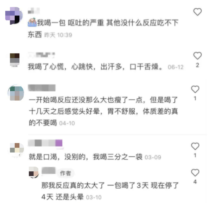 据小许描述,一开始她是听朋友说,这款产品效果不错,便从网络购物平台购买了 10 袋。小许表示,这个“星空咖啡”饱腹感确实强,吃完就算饿,看到饭也吃不下。