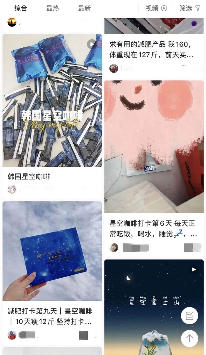 在网络上,“星空咖啡”的讨论度相当高!浏览某知名社区平台,可以发现很多网友都在发帖推荐“星空咖啡”。正在喝的网友也会每天打卡分享自己的“减肥疗效”。