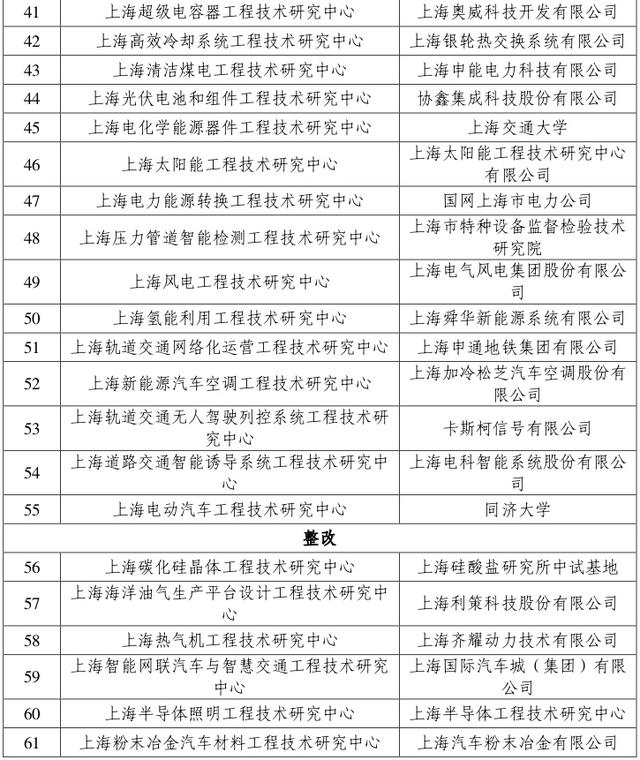 上海镁材料及应用工程技术研究中心等9家工程中心评估结果为“优秀”,上海煤基多联产工程技术研究中心等9家工程中心评估结果为“良好”,上海航天树脂基复合材料工程技术研究中心等37家工程中心评估结果为“一般”,上海碳化硅晶体工程技术研究中心等6家工程中心评估结果为“整改”。