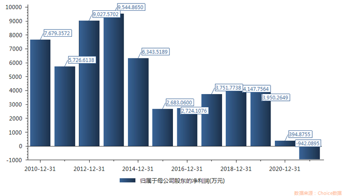 财务数据显示,2015年至2020年,该公司归属于上市公司股东的净利润分别是2683.06万元、2724.11万元、3751.77万元、4147.76万元、3950.26万元、394.88万元。2021年前三季度,该公司在营收同比增15.51%至16.1亿元的情况下,其归母净利润盈转亏至亏损942万元,其中第三季度及亏损1116.84万元。
