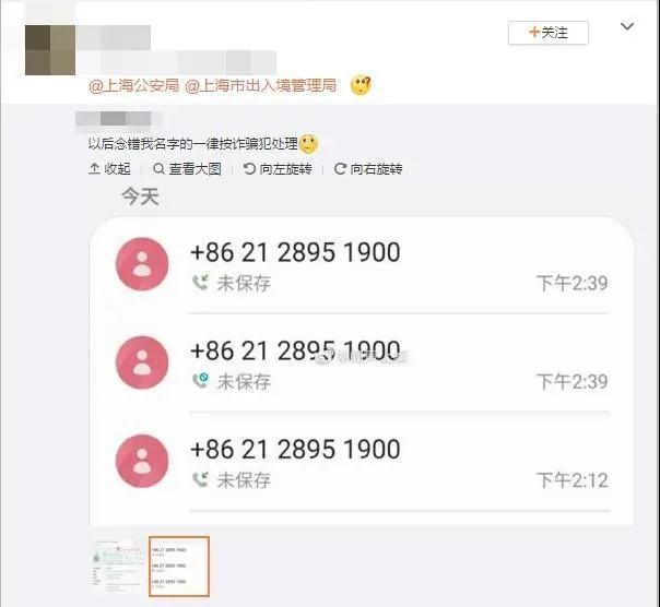 近日,有多名网友在社交平台上反映称,接到来电显示为“上海市公安局出入境管理局” 、021-28951900、021-68547109、021-68541199的诈骗电话。