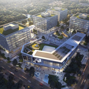 虹桥国际中央商务区不乏有特色的商办综合体,东虹桥中心项目在设计上也有它独特的亮点。基于长宁片区的区位优势和周边航空总部资源集聚的特点,整体建筑外立面以“速度与激情”为灵感。其中,4栋办公采用双层low-e玻璃幕墙、外遮阳系统和幕墙装饰条,通过漫反射作用使流溢的光线跳跃在视线所及的每一处,为建筑注入生机和活力。商业建筑则以飞机起飞时与地面的夹角为核心设计理念,退层、折线、交错,连廊,仿佛误入多维时空,打造充满想象和未来感的概念空间,呈现出浓厚的商务气息和现代感。