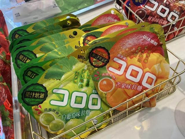 沿街红砖墙上印着熟悉的招牌小人儿,洋房内童话宫殿式装修风格,玻璃柜中陈列了十余种系列糖果,共有四十多种口味:有压在舌尖下奶香四溢的牛奶糖,还有QQ弹弹的酷露露果汁软糖……每一种都是校园时代的最爱。