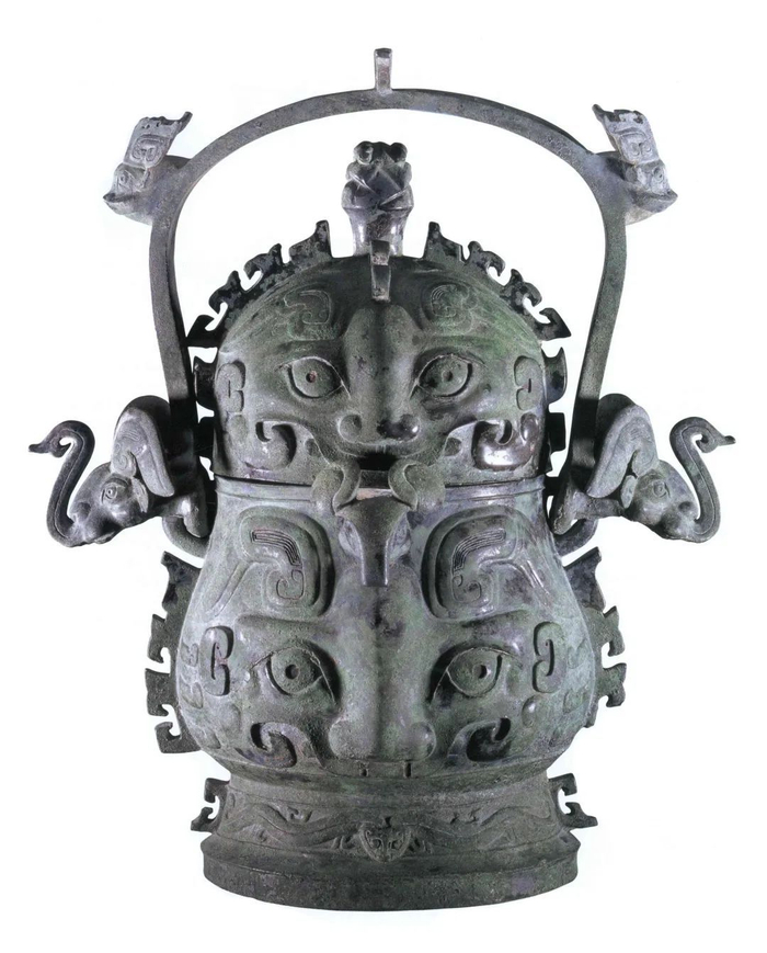 这件卣的主体工艺采用了陶范铸造法,只有很少的部件使用了分铸铸接法。陶范铸造法有个特点,就是遇到比较复杂的器物时,要分别制作的陶范会比较多。并且,由于在最后铸造时需要将所有陶范组合起来,分块越多,那么组合时出现的误差就越大。所以几乎全部用陶范来一次性铸造这件卣的难度是非常大的。
