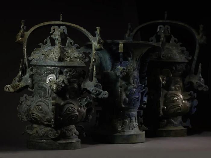 在西周早期的墓葬中,“一尊二卣”是一种非常流行的铜器组合方式。而在以前的展览和照片中,两件卣和一件尊的组合往往不会出现在同一个展柜或照片中,很难被观众直接看到。但这次我们在编辑图录时,特地将“一尊二卣”放在一起拍摄了一张照片,凸显了这种器物组合规律。