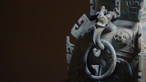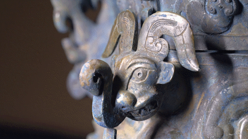 在布展时我们发现,“噩国卣”上的提梁不但细节非常精致,工艺水平也非常高超。这两件器物在地底下埋藏了2000多年,但被考古人员发掘出来后,它的提梁居然依旧能够转动,不禁令人震撼!
