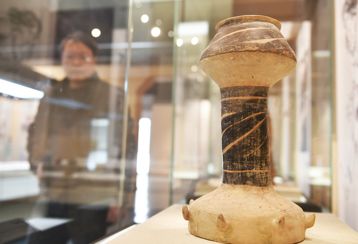 新石器时代马家窑文化的“旋纹彩陶鼓”,是迄今为止发现时代较早的打击乐器。 视觉中国 图