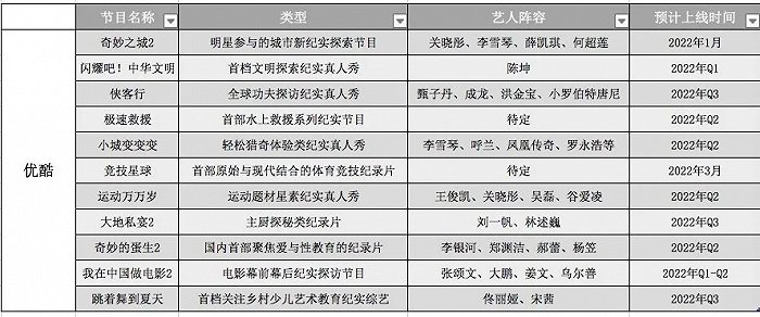 优酷2022年片单中公布嘉宾阵容的纪录片