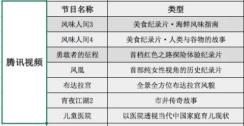 优爱腾B纪录片布局:美食IP最具生命力,优酷主打“明星”牌?
