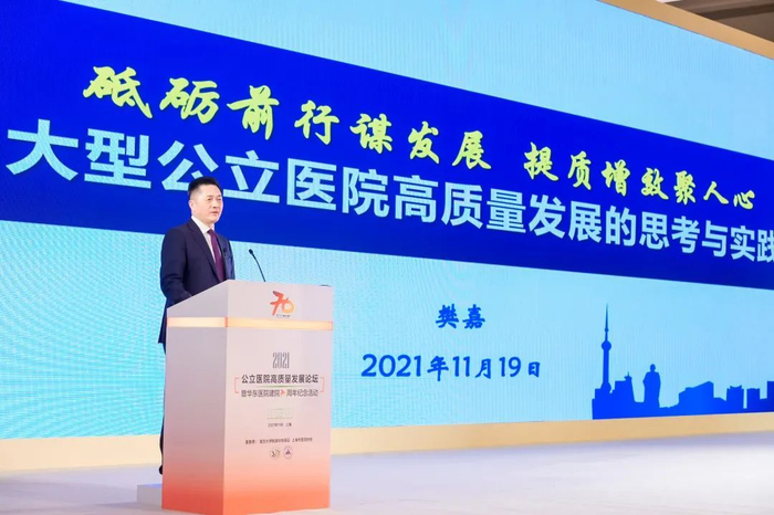 11月19日上午,公立医院高质量发展论坛暨华东医院建院70周年纪念活动举行。按照新冠疫情防控要求,活动在线上线下同步进行。