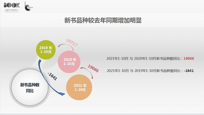 2021 年 1-10 月,零售市场共有 157940 种动销新书,与去年同期相比,新书品种增加 19086 种,主要是因为去年上半年受疫情影响严重,新书品种数大幅下降。如与 2019 年同期相比,今年 1-10 月的新书品种数减少 1641 种,延续了近年来新书品种数收缩的趋势。