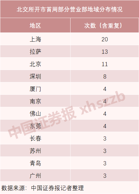 上海资金最为活跃。按营业部所地区统计,上海、拉萨、北京、深圳四地的营业部各上榜20次、13次、11次、8次。厦门、南京、佛山、东莞各上榜4次,长春、苏州、青岛、广州各上榜3次。
