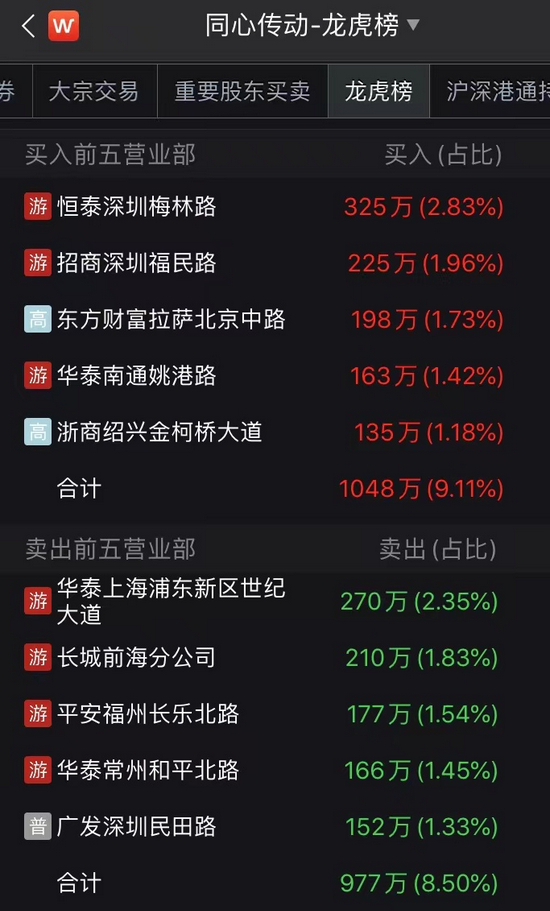 作为北交所开市首周“涨幅王”,游资频繁现身同心传动。以11月18日为例,上榜10个营业部中,有7个为游资席位。值得一提的是,同心传动开市首日大涨近500%,但随后4个交易日连续下跌。