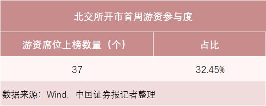 中国证券报·中证金牛座记者统计,本周共有114个营业部席位现身北交所股票龙虎榜,其中37个为游资席位(参照Wind标准),占比32.45%。