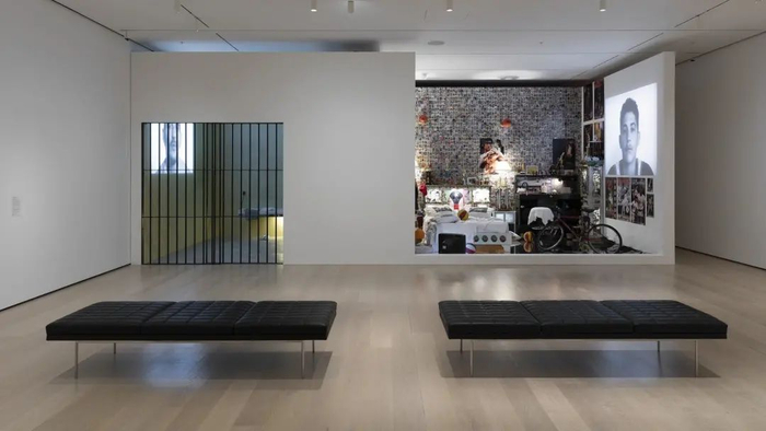为了仔细观察这种现象对于一个家庭的影响,奥索里奥拍摄了一段在新泽西州北部州立监狱服刑的父亲和他在家中的十几岁的儿子之间的对话。几个星期的时间里,奥索里奥在他们之间来回穿梭,分享对方的镜头,捕捉一种遥远而亲密的交流。在展厅里,你能看到两个截然不同的空间:一个监狱牢房和一个少年的卧室。尽管有“荣誉勋章”的概念,但孩子还是在某一刻脱口而出:“爸爸,我愿意放弃任何东西,只要你能回家和我们在一起。”