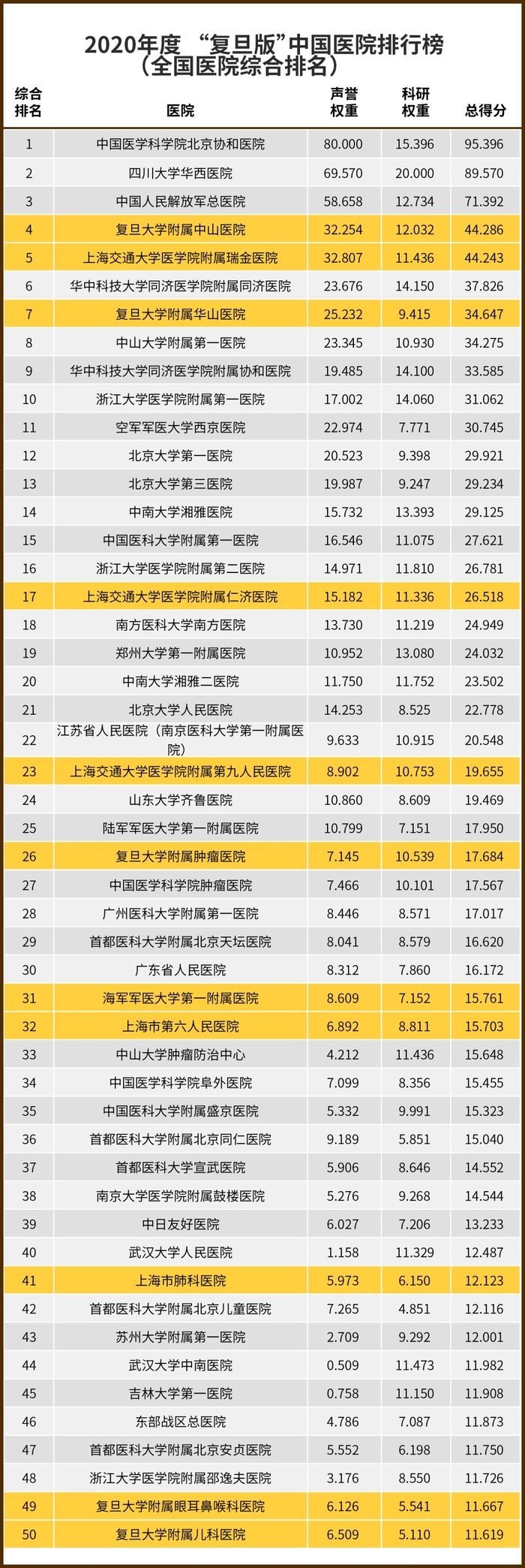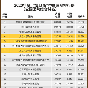 原标题:中国医院排行榜出炉!中山瑞金华山列前十,上海10个专科声誉第一 来源:上观新闻