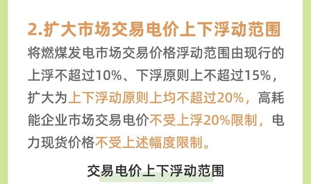 10月12日,国家发展改革委印发《国家发展改革委关于进一步深化燃煤发电上网电价市场化改革的通知》,明确有序放开全部燃煤发电电量上网电价,燃煤发电电量原则上全部进入电力市场,并将燃煤发电交易价格上下浮动范围扩大到均不超过基准电价的20%,高耗能企业市场交易电价不受上浮20%限制。