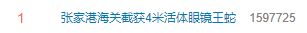 11月20日早上,#张家港海关截获4米活体眼镜王蛇#一度登上微博热搜第一。