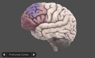 脑功能图成像技术显示,前额叶皮层(如图)在大脑的高级功能中扮演了重要角色,如:计划、判断、理性、抑制和社会行为的调控,对情绪调控具有重要的作用。而前额叶皮层的发育相较于其他脑区更晚,从青春期开始进入快速发展阶段,到25岁时接近发育成熟。因此,青少年调节情绪的水平较低是神经系统发展规律使然,同时也是沉迷网络的青少年脾气暴躁的生理基础。