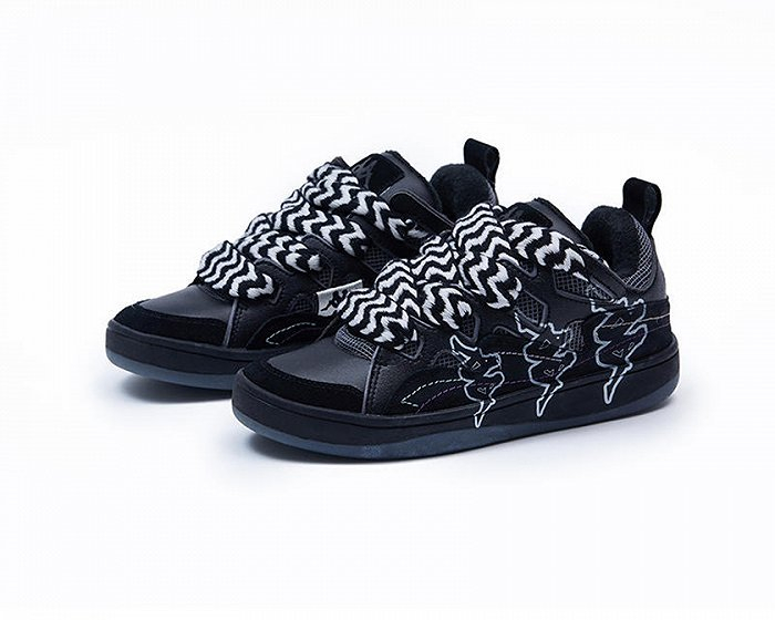 Kappa Fatty选用近期流行的面包滑板鞋型,营造千禧年街头复古风格,通过解构拼接的手法将多种材质结合,以设计出整体的层次感。