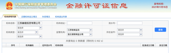 11月21日下午,红星资本局发现,赫煌投资公司除了营业执照外,其他的企业资质均查询不到,或为造假。