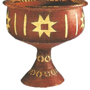 大汶口文化以特点鲜明的陶器为主要特征,有代表性的如有代表性的如八角星纹彩陶豆、红陶兽形壶、背壶、钵型鼎、镂孔豆、高柄杯、白陶鬶等。这些陶器以夹砂陶和泥质红陶为主,也有灰陶、黑陶,而且还有少量硬质白陶。纹饰常见镂孔、划纹,附加堆纹、篮纹,还有彩陶和朱绘等。这些陶器美妙绝伦,被称为“山东最美彩陶”。