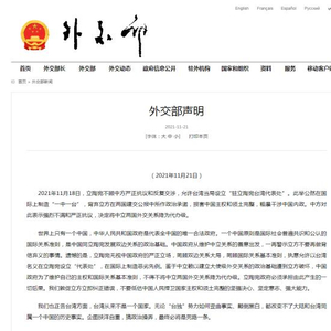 外交部21日在声明中还对台湾方面发出警告。声明称,我们也正告台湾方面,台湾从来不是一个国家。无论“台独”势力如何歪曲事实、颠倒黑白,都改变不了大陆和台湾同属一个中国的历史事实。企图挟洋自重,搞政治操弄,最终必将是死路一条。